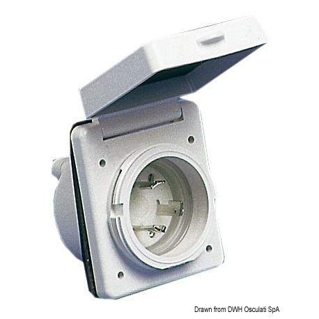 Presa con corpo in Luran resistente UV, copertura posteriore protezione cavi, contatti in ottone argentato. Spina in policarbonato + Moplen con sistema blocca cavo e contatti in ottone argentato. Cappuccio proteggi spina in PVC con ghiera a rotazione rapida in Luran resistente UV. Voltaggio 220/110. Amperaggio max 30 A.