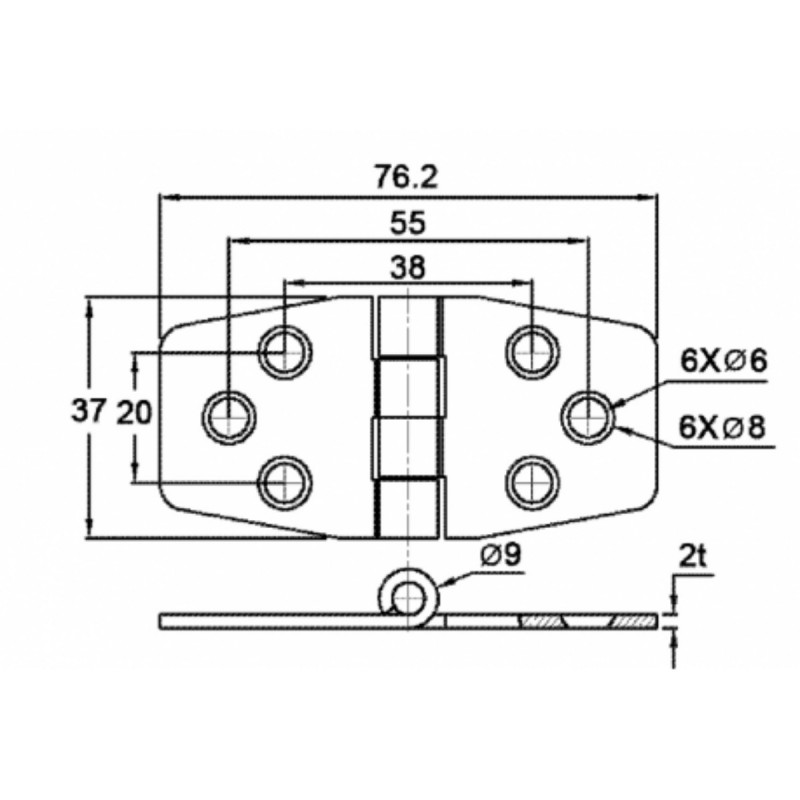 Cerniera con copertura in acciaio inox aisi 316 - Dimensioni 76 x 37