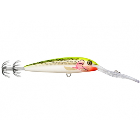 Il Deep Squid, fatto di balsa, si tuffa più in profondità tra le alghe, le rocce e le fessure in cui abitano i calamari. Il suo ampio labbro spinge l'esca in azione a velocità super basse mentre scende con facilità verso la sua profondità di corsa ottimale.