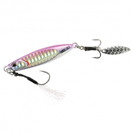 Capacità di lancio su lunga distanza + effetto lama! !! Questo è il nuovo Drag Metal Cast Shot. L'impostazione del bilanciamento del baricentro posteriore è stato ideato per lanciare lontano, la lama posizionata sul retro dell'esca e l'assist in testa con filamenti flash tinsel aumentano l'appeal anche semplicemente effettuando un recupero lineare. Drag Metal Cast Shot è un'esca che attira il bersaglio semplicemente cercando i predatori su di una vasta zona, lanciandolo e avvolgendolo, in questo modo sarà facile ottenere un'azione vibrante che massimizza gli attacchi; il suo design è ottimo anche per quei recuperi alternati a dei lunghi stop, difatti la sua conformazione lo renderà molto appetibile in fase di discesa in quanto creerà un'azione svolazzante arricchità da continui effetti flash dovuti dalla sua verniciatura, dalla lama e dai tinsel sull'assist, imitando alla perfezione una preda ferita.