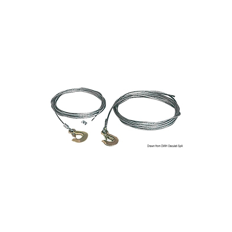 In acciaio zincato flessibile tipo “Aircraft” completi di moschettone e fermo di fissaggio al tamburo.