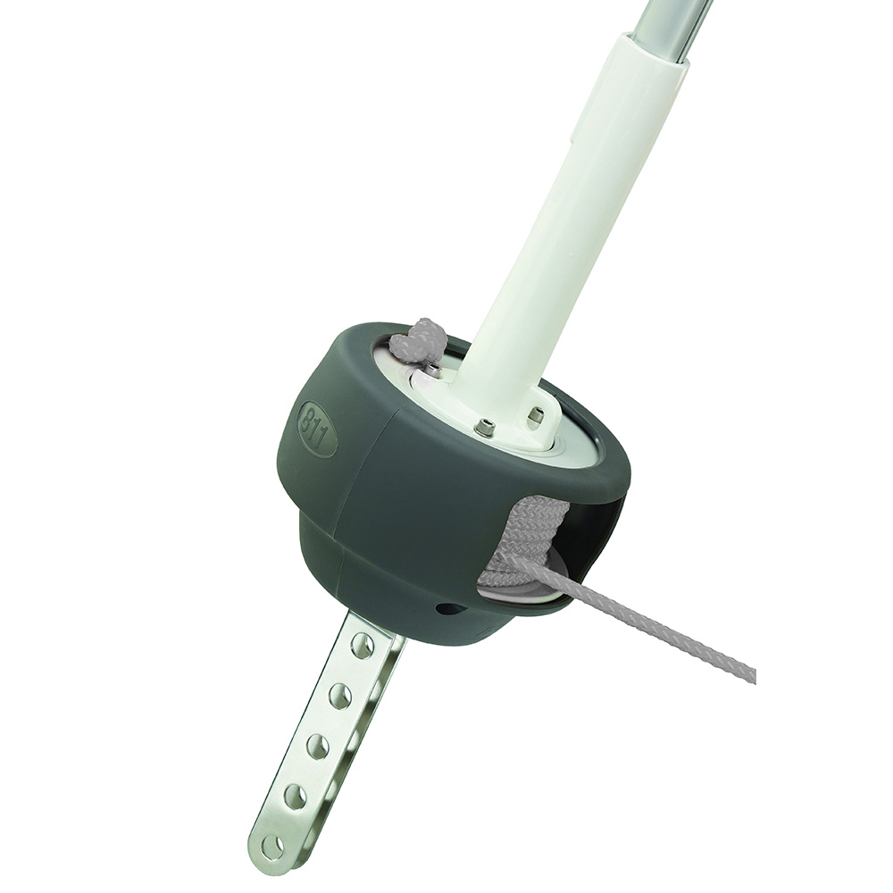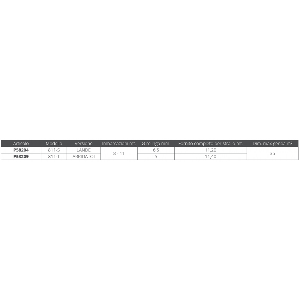 Questo nuovo tamburo, come anche il nuovo mulinello, sono muniti di sfere Torlon(per la ripresa dello sforzo) e di sfere in Delrin (per la guida)che permettono di aumentare considerevolmente le prestazioni e la resistenza meccanica dell' avvolgitore. Avvolgitore serie T (T=twin) a doppia canalina permette di issare e armare la vela nuova prima di ammainare la vecchia,perfetto in regata o per una seconda vela. Strallo Ø mm. 4 - 7, capacità del tamburomt. 17,5, treccia Ø mm. 8. Per imbarcazioni tra 8 - 11 mt. Relinga Ø 5mm. Fornito completo per lo strallo mt. 11,40. Dim max genoa m² 35. Montaggio su arridatoi.