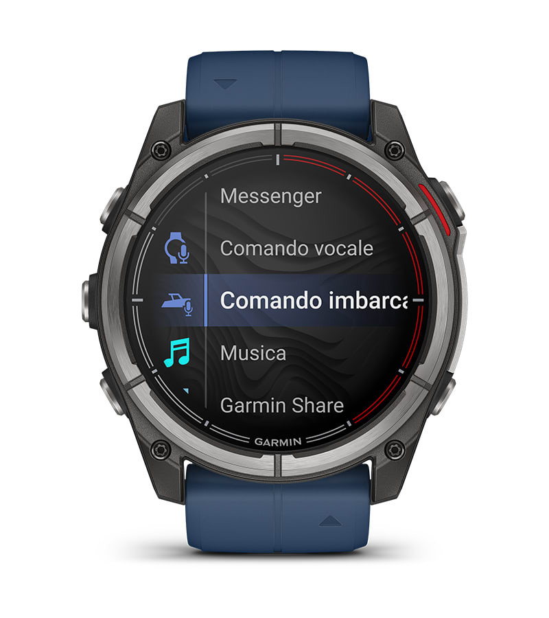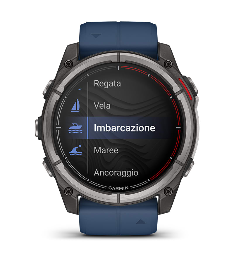 Il quatix® 8 è lo smartwatch per la nautica di ultima generazione progettato per offrire prestazioni eccezionali a bordo e nella vita di tutti i giorni. Dotato di speaker e microfono integrati, consente il controllo vocale diretto degli strumenti di bordo compatibili e permette di rispondere alle chiamate senza distogliere l’attenzione dalla navigazione. È disponibile in due formati – 47 mm e 51 mm – ed è equipaggiato con un brillante display AMOLED da 1,4”, lente in zaffiro antigraffio, lunetta in titanio e nuovi pulsanti metallici completamente impermeabili.